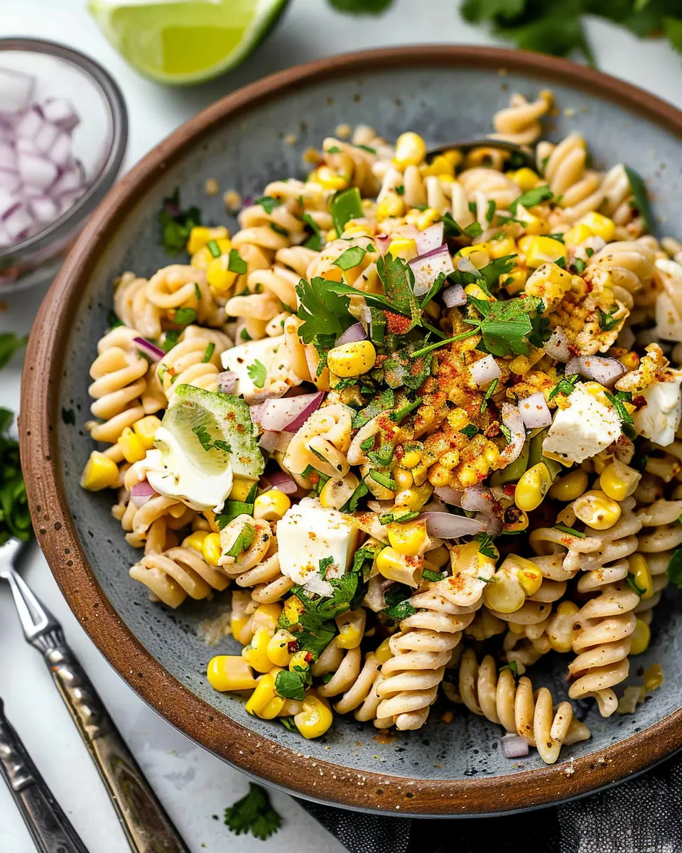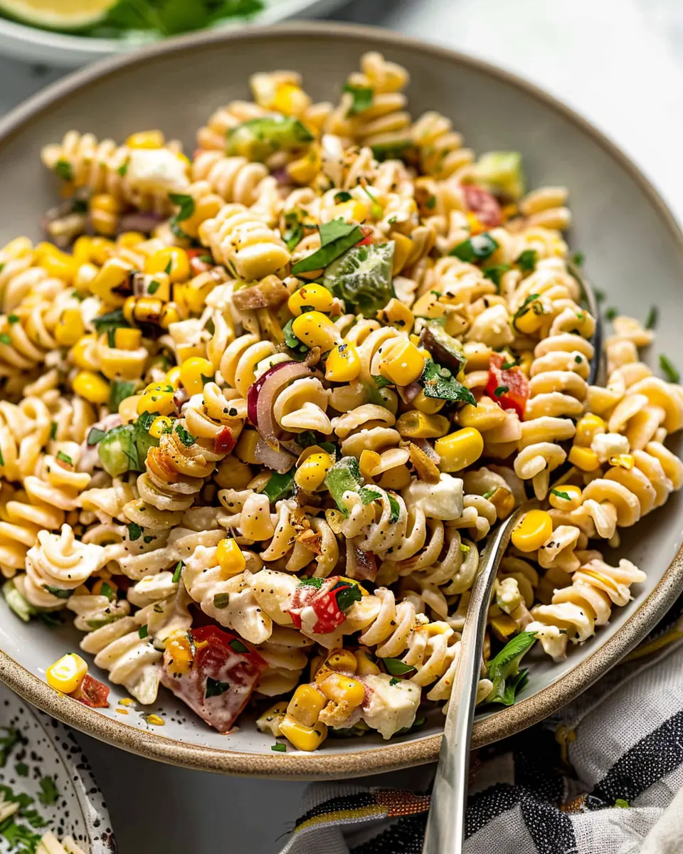 A refreshing and flavorful pasta salad inspired by the popular Mexican street corn.