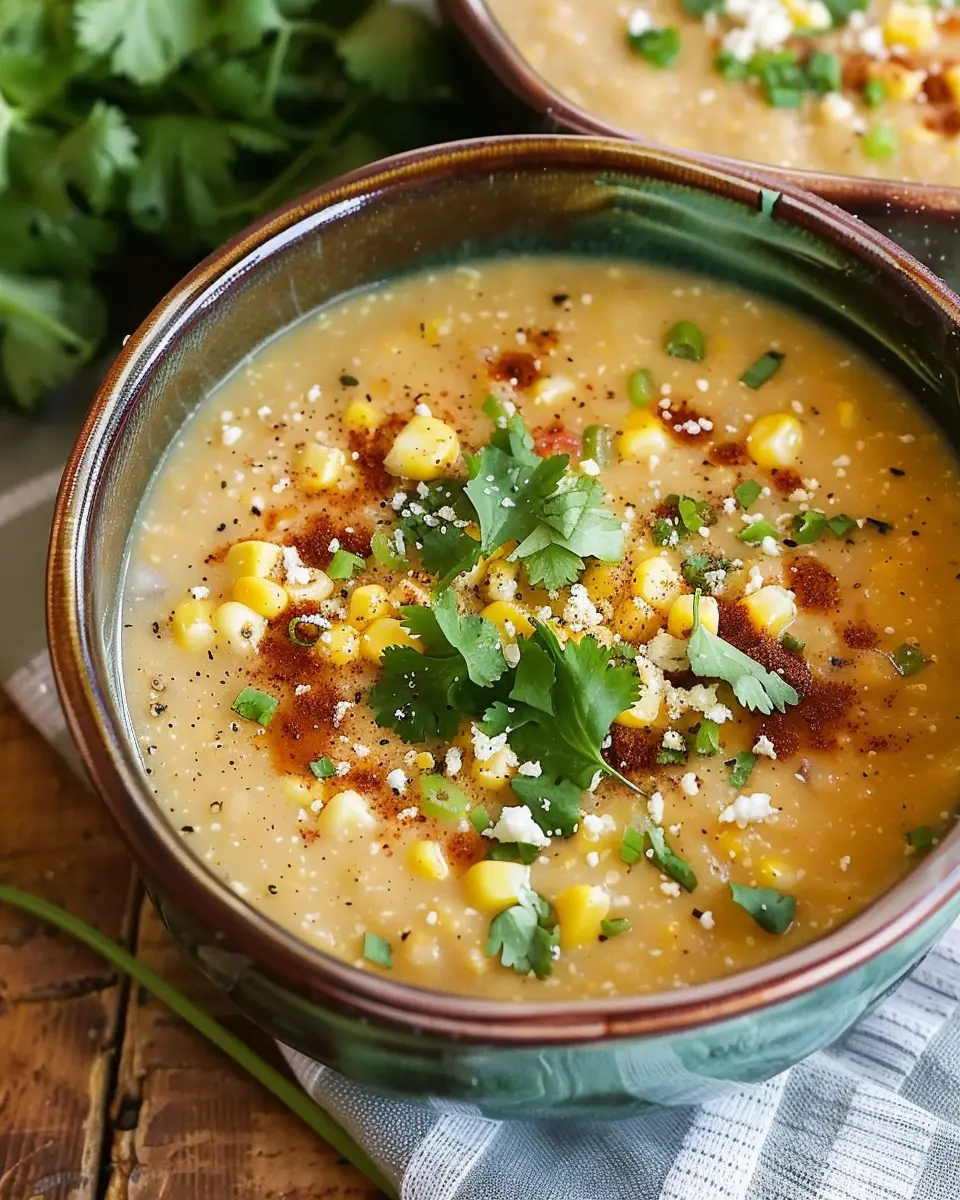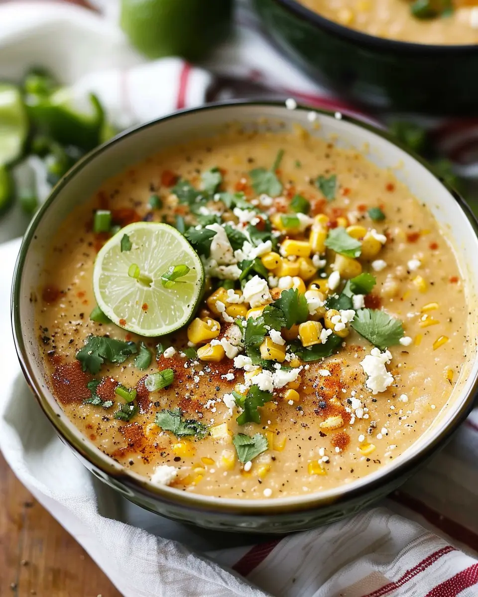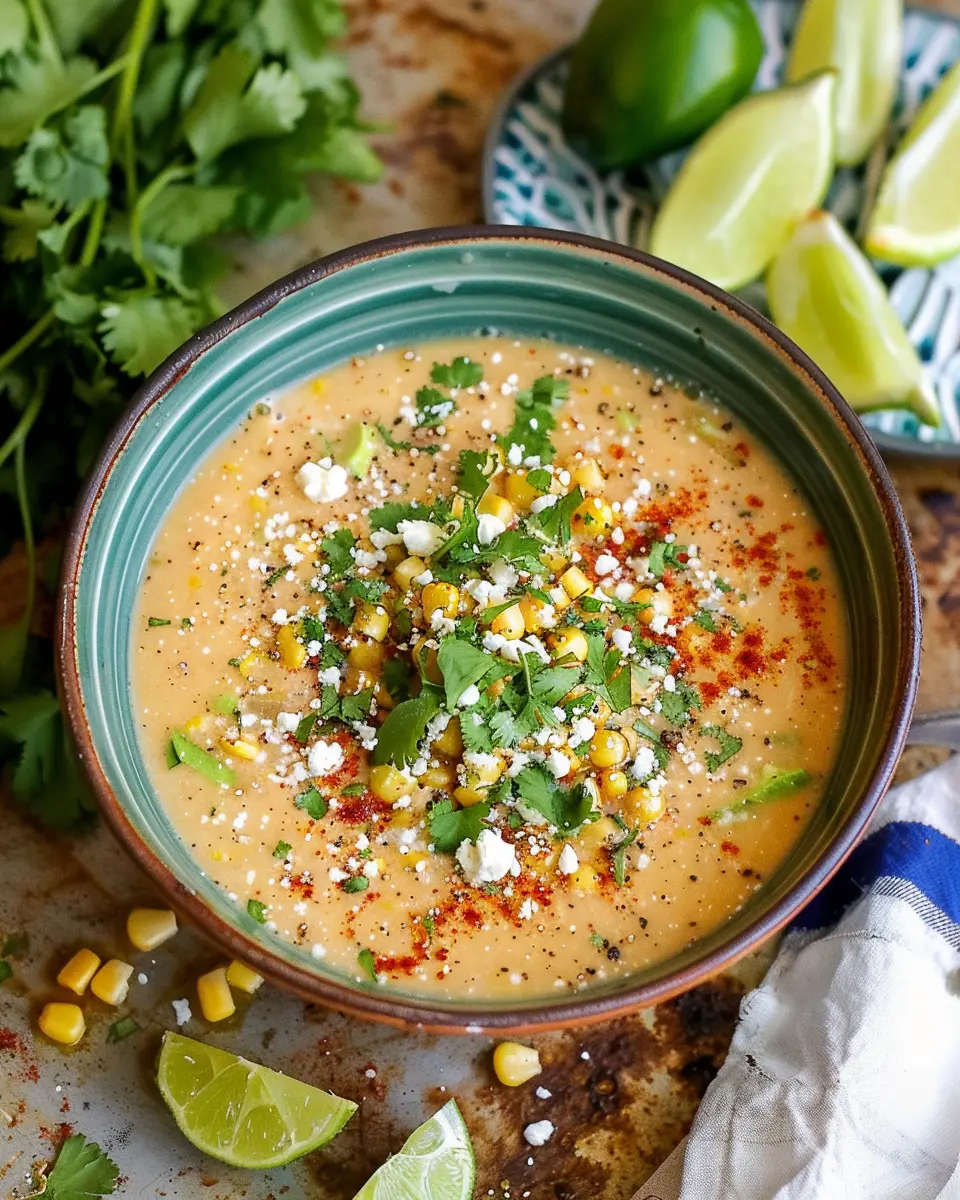 If you’re a fan of heat, you’ll love this Spicy Mexican Street Corn Soup variation. Adding chopped jalapeños or serrano peppers is a simple way to up the spice quotient. For even more flavor, try mixing in some smoked paprika or cayenne pepper while simmering the soup. Are you a fan of creamy textures? Blend a portion of the corn with the broth to create a richer, thicker consistency. To finish it off, garnish with crumbled queso fresco, a squeeze of lime, and a sprinkle of chili powder for that authentic street-style bite.