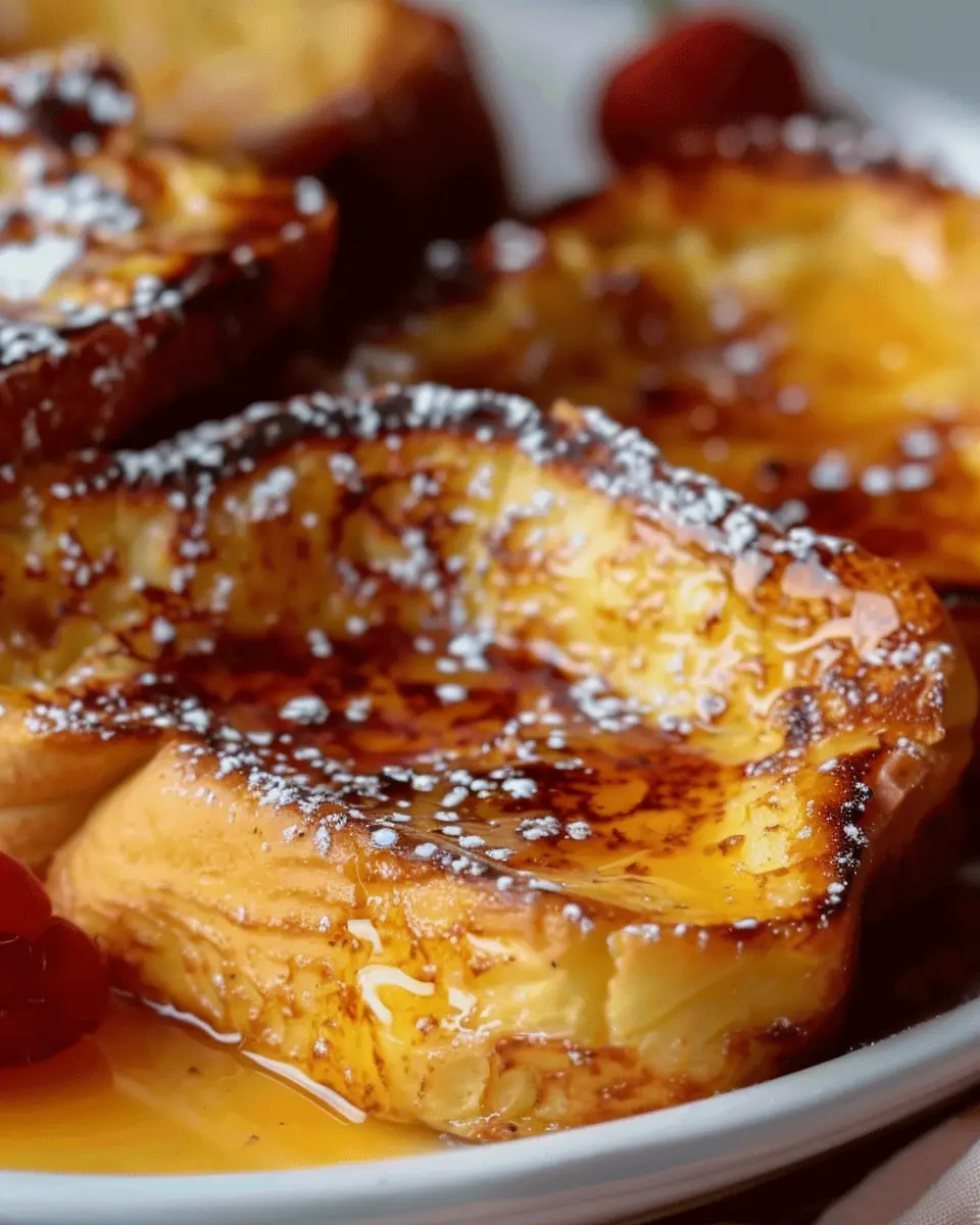 To achieve that dreamy, gooey center, it’s all about the bread you choose. Opt for a sturdy artisan loaf or brioche—these types soak up the rich custard beautifully. Make sure to slice the bread thickly; this prevents it from getting overly soggy and helps maintain the perfect texture. When you’re preparing your custard mixture, allow it to rest in the fridge for at least 4 hours or overnight. This allows the bread to absorb the flavors fully. Lastly, when baking, check your French toast regularly to avoid overcooking; a little jiggle in the center is a good sign that it’s not dried out.