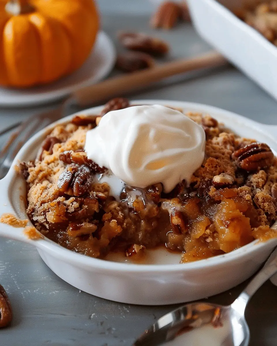 Nothing elevates your Pumpkin Pecan Cobbler quite like a sumptuous scoop of vanilla ice cream or a dollop of whipped cream on top. The creamy textures beautifully contrast with the warm, spiced cobbler, making each bite a delightful experience. For a festive twist, consider adding a sprinkle of cinnamon or nutmeg to your whipped cream. If you want to mix things up, why not serve it alongside a side of fresh cranberries for a tart contrast?