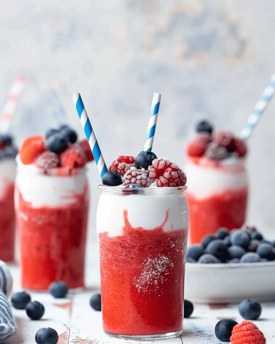 These refreshing Red White and Blue Berry Coconut Slushies are more than just a treat; they make every occasion a bit brighter! Picture this: a sunny summer BBQ, where your guests are cooling off and chatting over these vibrant drinks. They’re ideal for celebrating Independence Day or any outdoor picnic where festive vibes are a must. You could even whip up a batch for game day — nothing beats a chilled slushie while watching your favorite team!