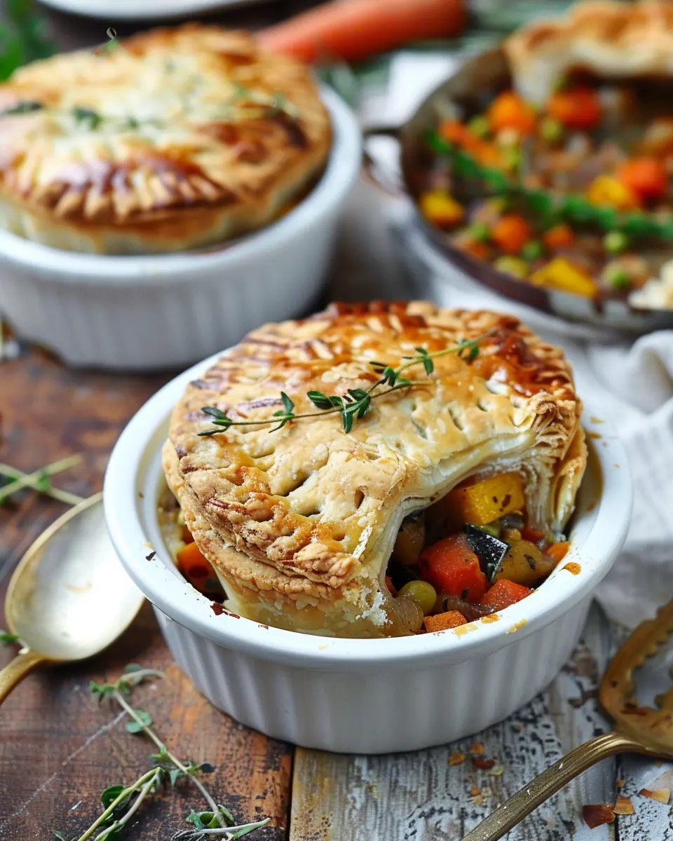 Presentation plays a vital role in the enjoyment of food. For gatherings, serve your Roasted Autumn Vegetable Pot Pies in individual ramekins, allowing guests to savor their own personal portions. Add a sprig of fresh thyme or rosemary on top for a pop of color and aromatic flair.