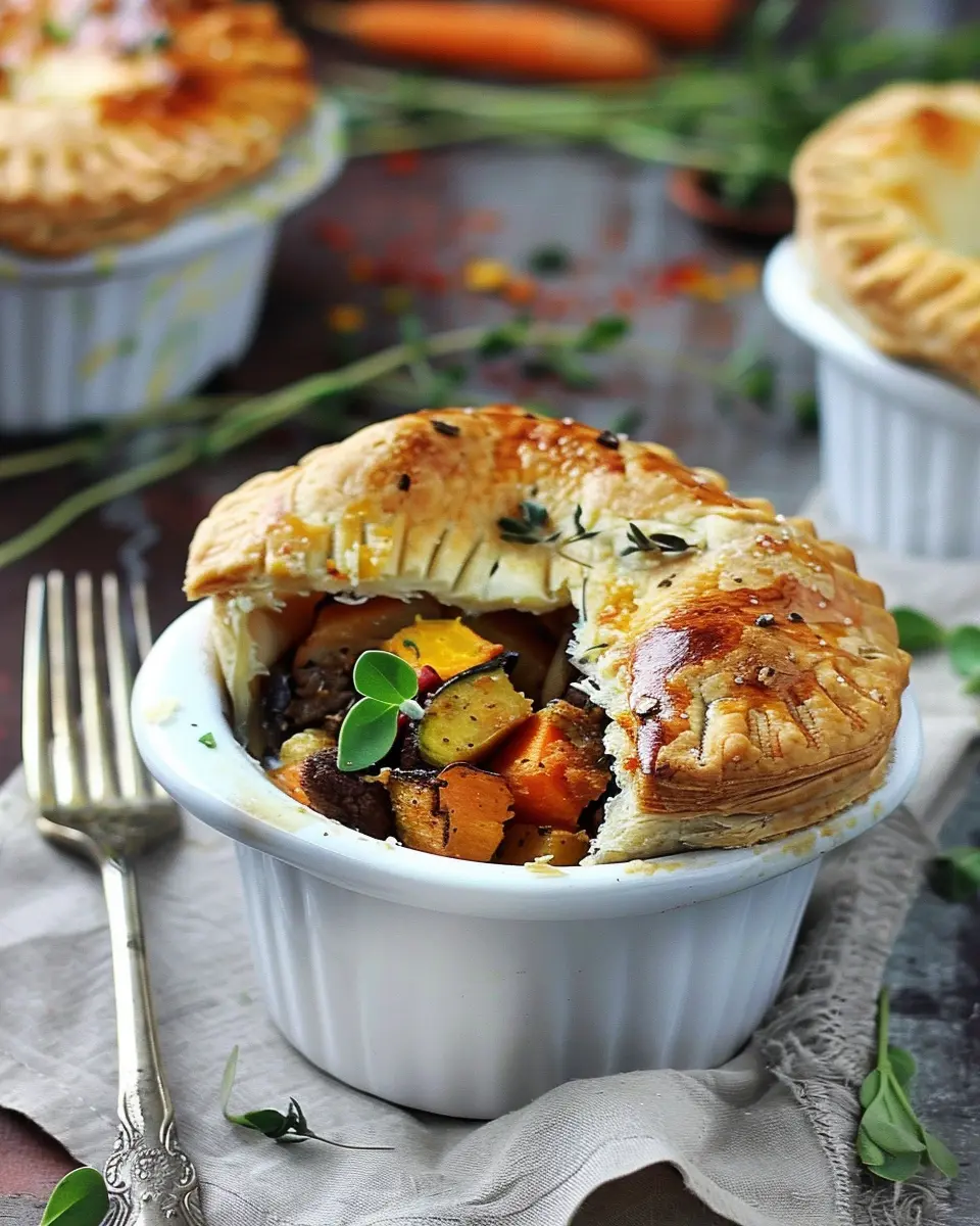 Enjoy the warmth and comfort of Roasted Autumn Vegetable Pot Pies, perfect for chilly days.