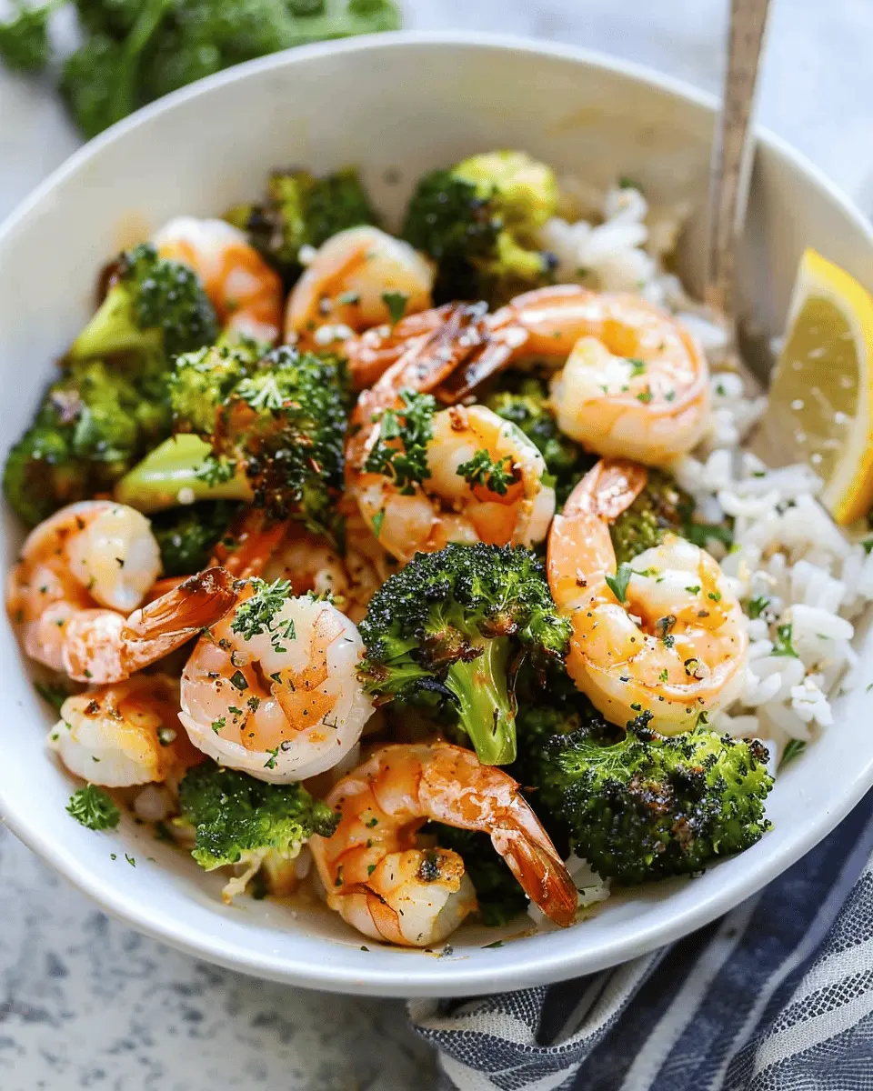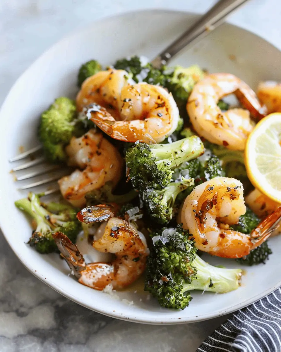 Once your roasted shrimp and broccoli are done, it’s time to serve! Transfer the mixture to a serving dish, and drizzle with a little more lemon juice for brightness. You can garnish with fresh parsley or a sprinkle of Parmesan cheese for an extra touch.