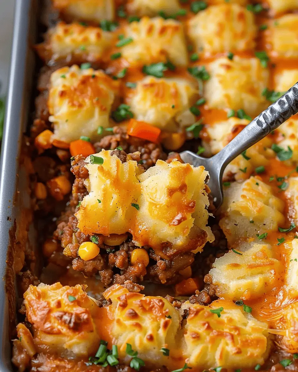 Shepherd’s Pie with Tater Tot Topping is a delightful and comforting dish perfect for family gatherings.