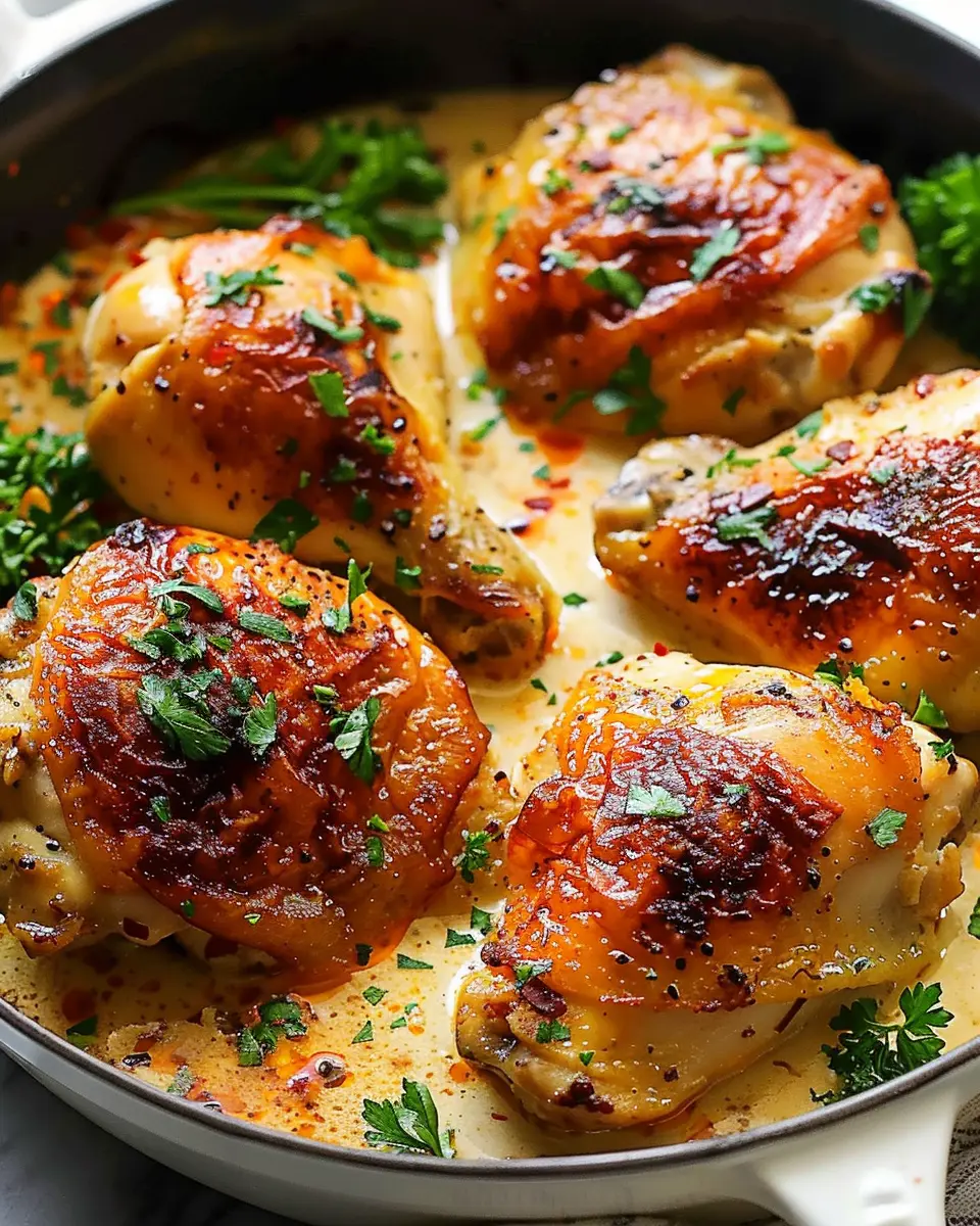 2. In the same skillet, add chicken thighs and sear until golden brown on both sides. Remove and set aside.