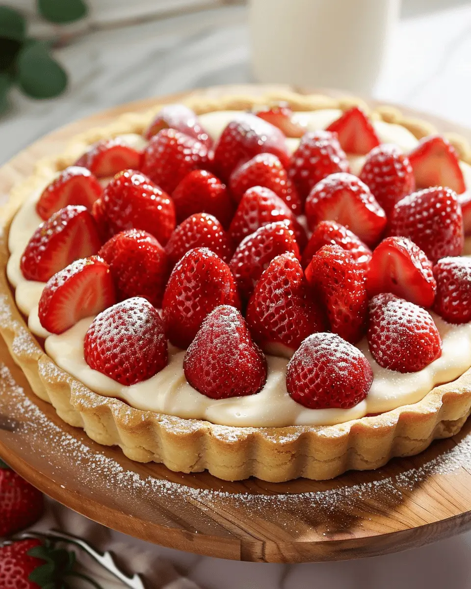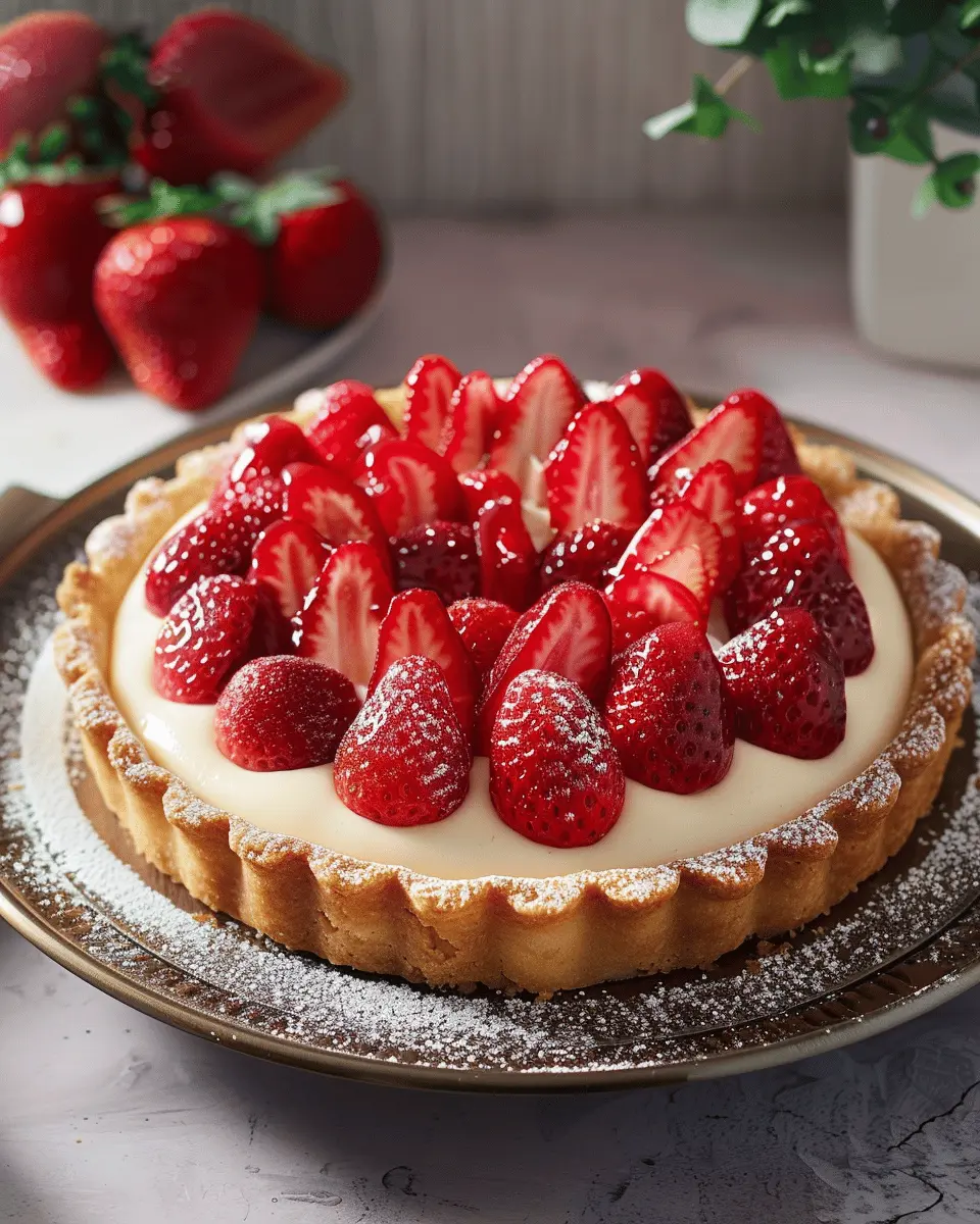 A delightful and creamy strawberry custard tart that is perfect for any occasion.