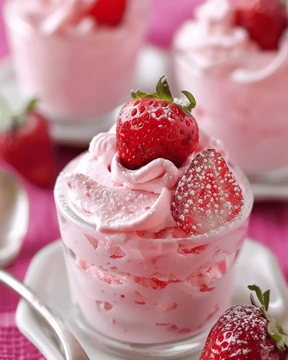 Enjoy a light and fluffy strawberry mousse that is easy to make and perfect for any occasion.