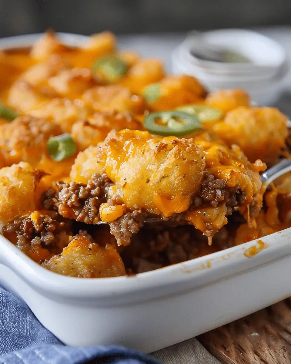 PrintTater Tot Casserole with Ground Beef: A Cozy Family Favorite