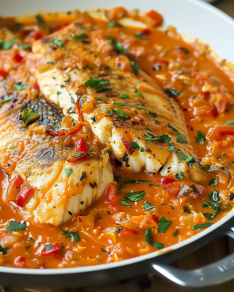 PrintTilapia in Roasted Pepper Sauce: A Juicy Homemade Delight