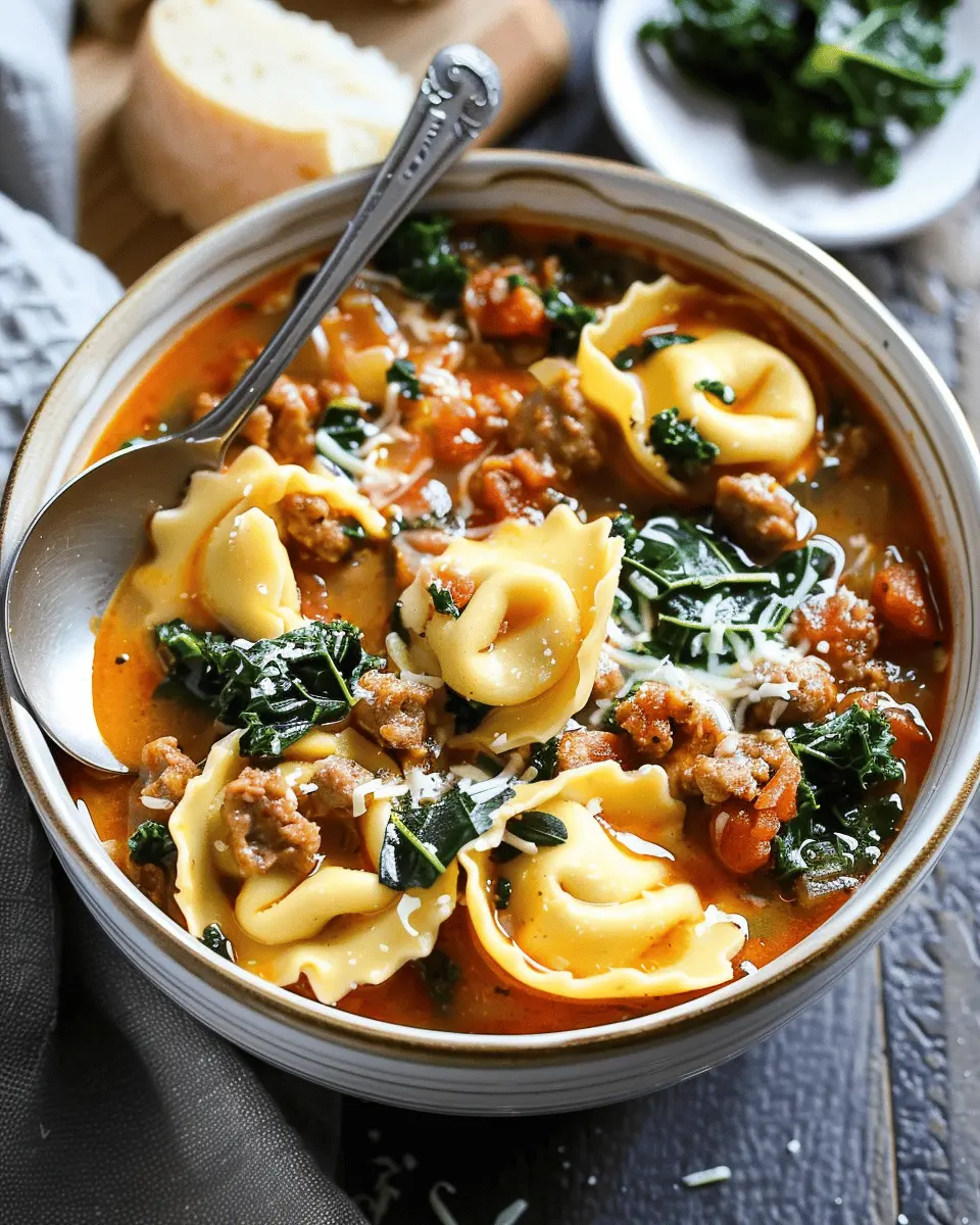 Tortellini Soup with Italian Sausage and Kale is the perfect cozy dish for chilly evenings, packed with flavors and nutrients.