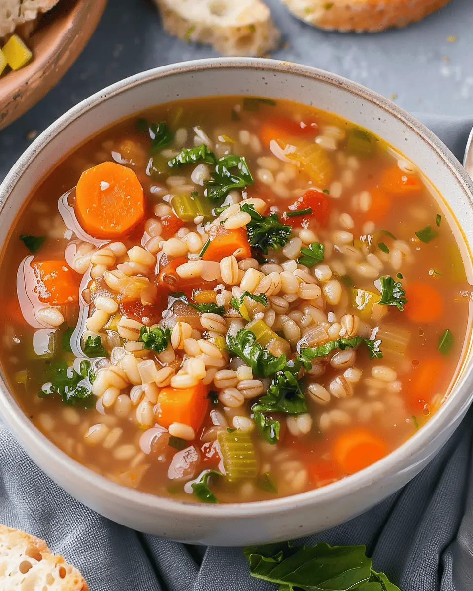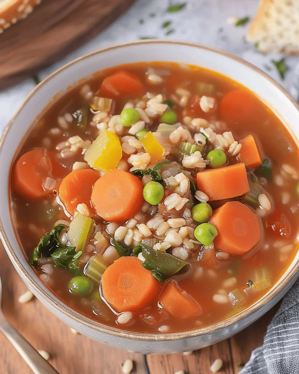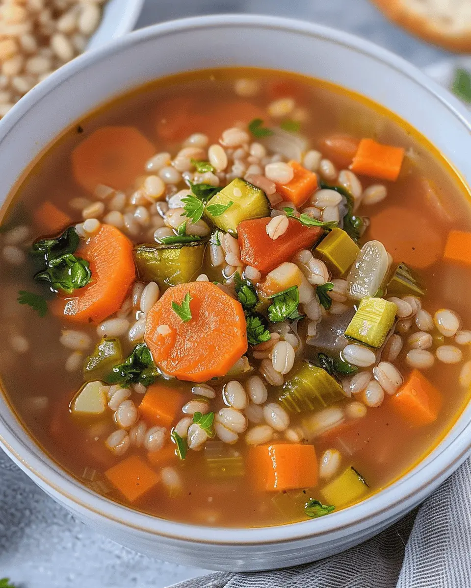 A comforting and nutritious vegetable barley soup perfect for any homemade meal.